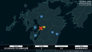 未分類 17日 0時45分頃、熊本県熊本地方を震源とするM3.5、最大震度3を観測する地震がありました。この地震による津波の心配はありません。 0230417004550