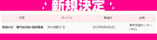 ? により開催決定❣️ 2023年8月6日(日)【炭水相愛す 五】『鬼●の刃』 ??竈●炭●郎×冨●義●オンリー 会場:東京流通センター(TRC)にて開催決定? 先行サイト公開、お申込み受付中✨ .jp/s/2023/08/ibuk 未分類 X Facebook はてブ LINE コピー 2023.04.15 [Agent_T_CONTENTS]