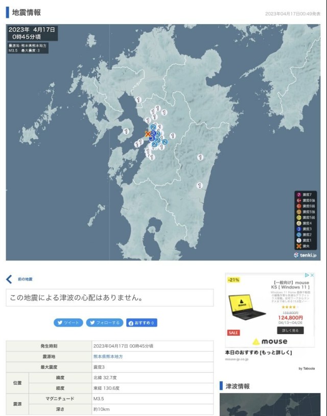 え❗️今、テレビで熊本地震から7年ってやってて、第20回統一地方選の後半戦は16日、政令市を除く88市長選ってニュース見て、88の数霊は(熊本・富士)また、熊本!って思ってたら、熊本で地震?何このシンクロ❗️さっき友人と富士火山帯の話したし。88は母体・御仏・倫理・胎盤・血軸,無限・カナダも 未分類 X Facebook はてブ LINE コピー 2023.04.17 [Agent_T_CONTENTS]