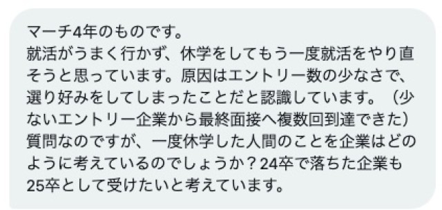 24卒マーチ。就活が上手くいかないので休学して再挑戦しようと思うのですが、企業側から見て「休学」にどんなイメージを、どんな印象を、どんな風に見られるのでしょうか?