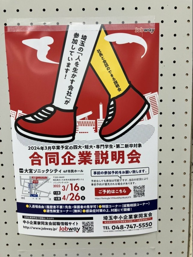本日、大宮ソニックシティの4F市民ホールで「合同企業説明会」があり、金子商事も参加させていただきました? これから就職される皆様にとっては、色々な業種の会社さんがあり、興味のある職業や、全く知らなかった職業のお話も聞く事が出来る とても貴重な体験になったのではないでしょうか? 未分類 X Facebook はてブ LINE コピー 2023.04.27 [Agent_T_CONTENTS]