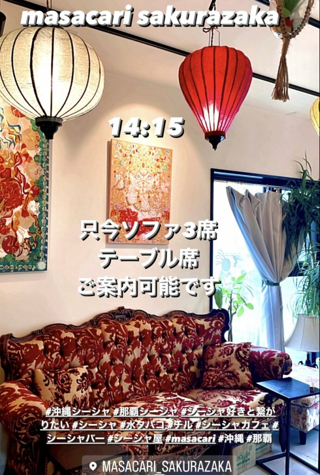 masacari 桜坂店 只今ソファ3席テーブル席ご案内可能です! ご来店お待ちしてます!! 未分類 X Facebook はてブ LINE コピー 2023.05.06 [Agent_T_CONTENTS]