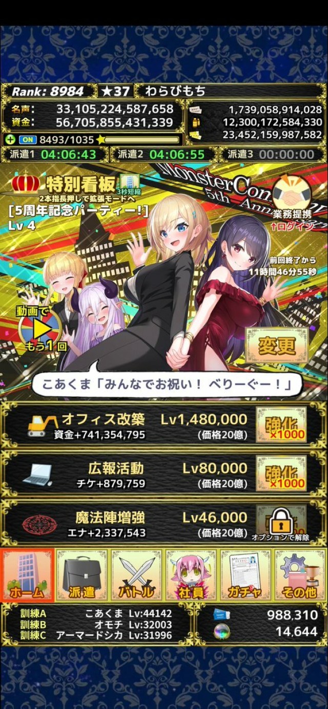 派遣会社経営SLG『モンスターカンパニー』経営報告! Rank:8984 (★37) 社員数:132 社員合計LV:5701911 ios: Android: 未分類 X Facebook はてブ LINE コピー 2023.05.04 [Agent_T_CONTENTS]