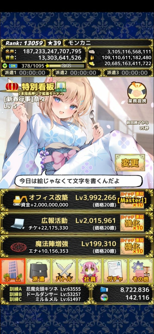 派遣会社経営SLG『モンスターカンパニー』経営報告! Rank:13059 (★39) 社員数:125 社員合計LV:10520161 127日目 ios: Android: 未分類 X Facebook はてブ LINE コピー 2023.05.10 [Agent_T_CONTENTS]